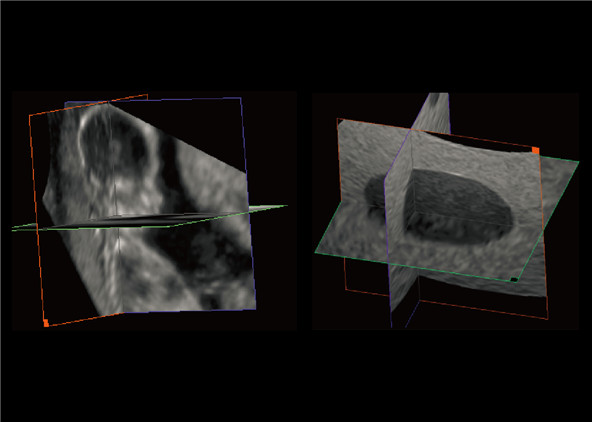 • Da der Anwender die sagittale, axiale und koronare Ansicht eines Ziels durch Verschieben des Kreuzungspunkts der drei orthogonalen Ebene ändern kann, erleichtert es die Beurteilung des Schallbildes.